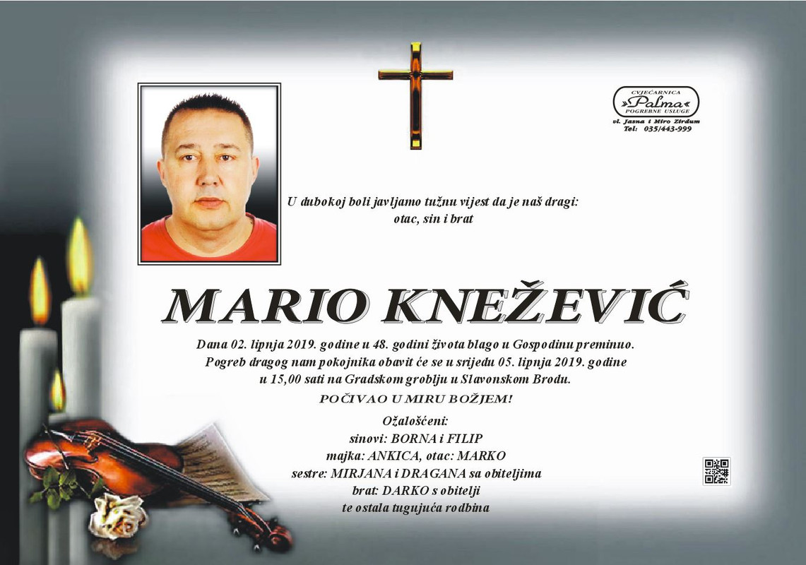 Posljednji ispračaj biti će u srijedu 05. lipnja 2019. godine u 15:00 sati na Gradskom groblju u Slavonskom Brodu.